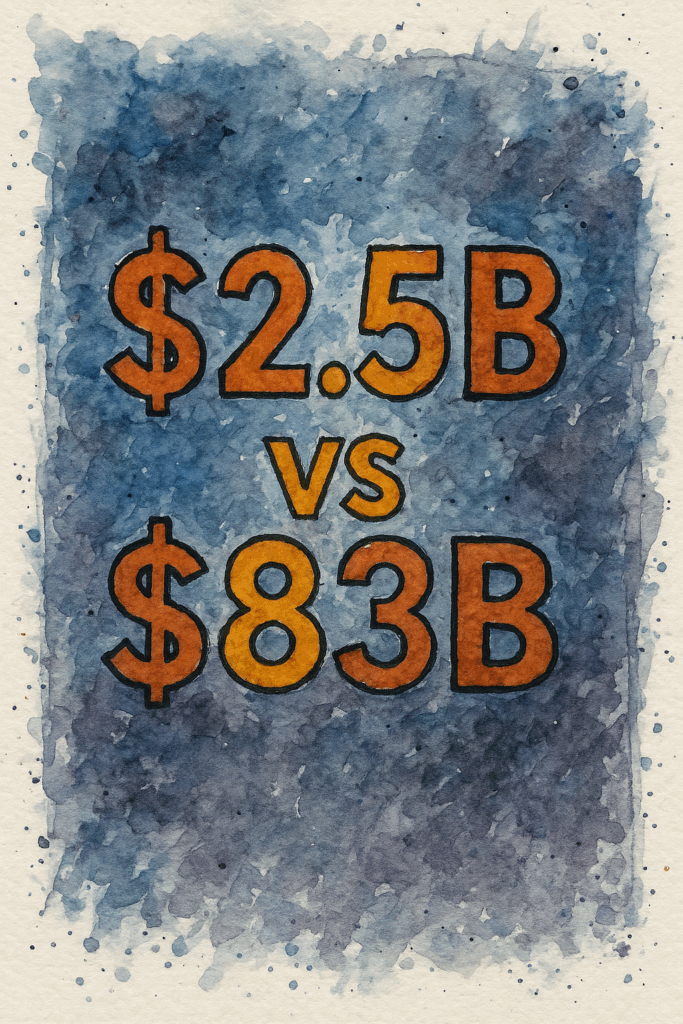- Trump’s add-on: $150B for funsies → $83B/month